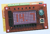 This mini dot-matrix scrolling LED display started as a car dashboard display, but can be used in any measurement or data logging application where 9-12V d.c. is available. Monitors up to six signals, eg speed, fuel, battery, cabin temperature, ECU data, and displays up to 10 computed values in a scrolling or static readout, on its 7 x 15 dot matrix LED. Two output channels for relays or buzzers, data logging is performed via USB upload to a PC.