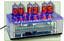 A traditional Nixie-tube digital clock display is brought right up to date with a 32-bit microprocessor and the addition of (optional) GPS-derived time setting to automatically determine the time zone around the world. Auto dimming of Nixie tubes and additional mood lighting supplied by blue leds. Date display, 7-day alarm and battery backup.