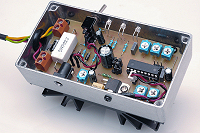 Also features dual function with an independent output, two alarm inputs with adjustable exit and entry delays, two door strike outputs, arm/ disarm output and LED indicator, and 200-code look ahead feature. PIC16F628 based transmitter [surface mount devices ­- soldering skills preferable], free source code download and PCB/ pwb foils available from our Library.