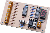 Optional remote display “extender board” can be located many metres away if needed. Ideal for model railroad turntable positioning or track selection, but it has many other uses as well. Easy to build, based on a discrete CMOS logic circuit.