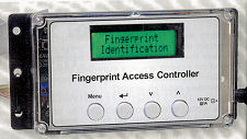 Enrolling up to 20 fingerprints, the fingerprint scanner module can be mounted on a plain pattress box and has a blue backlight, while the system controller has a menu-driven LCD and is mounted indoors. Variable timer strike period, built-in anti tamper routines, PIC 16F88 controlled.