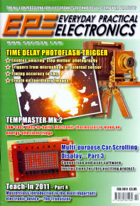 In December 2011 EPE page 59 we advised that on page 16, Fig 3 of this project unfortunately transistor Q3 is shown the wrong way round. The 'flat' of the transistor's body should be facing the 4k7 resistor, i.e. the collector pin should go to the anode (A) of LED1. The photograph on page 17 is correct.