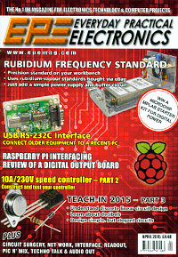 Next month: in May 2015's issue: Low-cost Precision 10V reference for DMMs; Deluxe Fan Speed Controller; RGB LED-strip Driver; Teach-In 2015 Part 5 - distortion and constant-current sources. Contents may be subject to change.