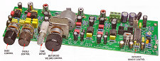 This superb pre-amplifier also has tone controls, and infrared remote volume control and input switching and muting. It can be used with just about any power amplifier, either built-in or as a standalone unit. THD+N < 0.001%, typically <0.0003%. Straightforward to construct using discrete components on a thru-hole PCB. The circuit PIC 16F88 microcontroller, free hex file downloadable from the PE website.