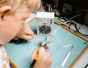 Commercial battery-operated cupboard lights are widely available in DIY stores and by mail order from electronic component suppliers. These lamps are useful as a simple means of lighting up a cupboard or for garden sheds and other places where no mains supply exists. The one drawback is that if they are left on accidentally, the batteries are exhausted with monotonous (and expensive) regularity. This simple project provides automatic timed control of a 3V battery-powered lamp. Uses a 7555 for minimal current consumption. Ideal for beginners. |